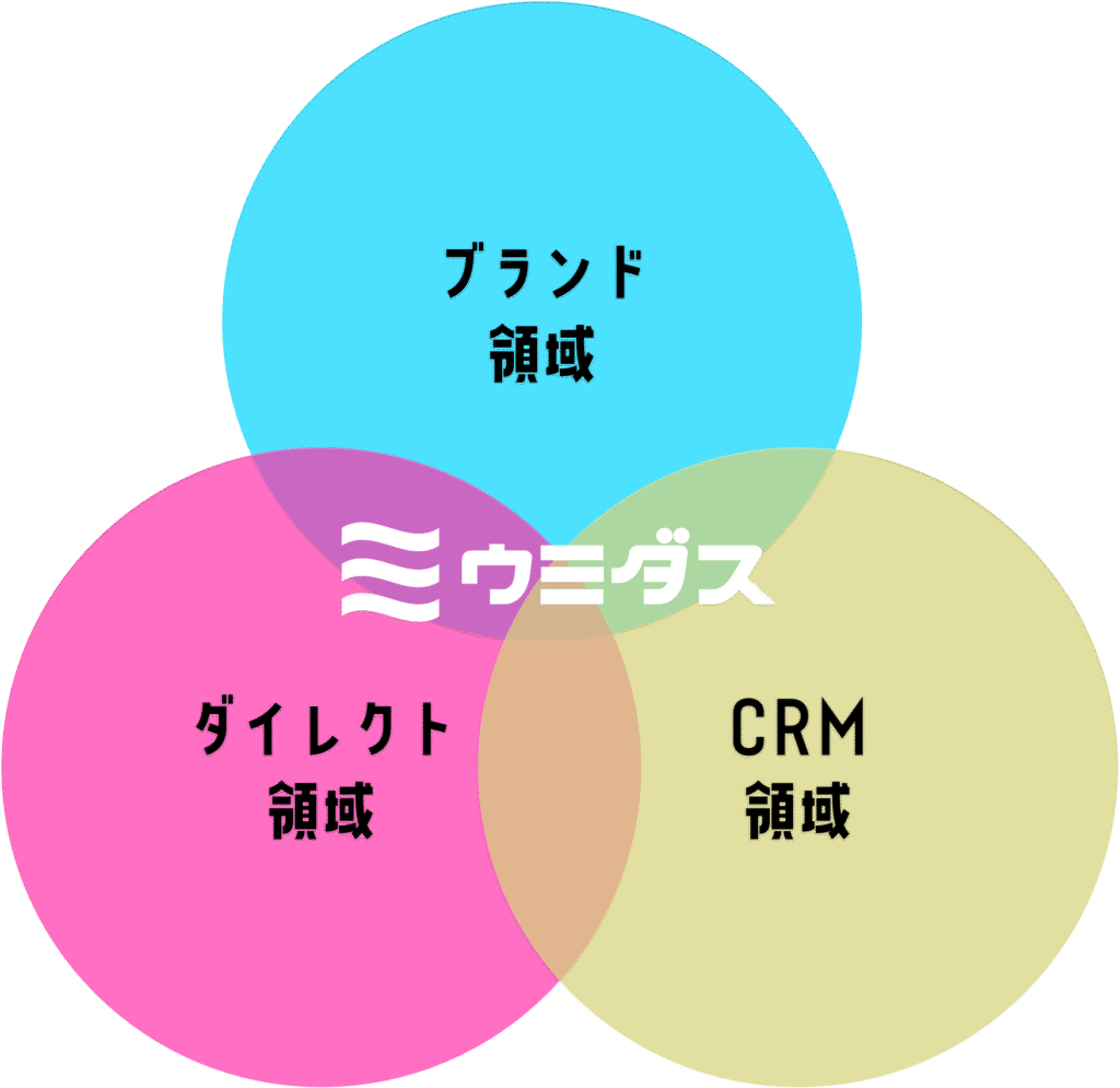 ウミダスが提供するのは、ブランド✕ダイレクト✕CRMを掛け合わせたフルファネル発想でのクリエイティブソリューション。ブランド認知拡大のみに終わらず、顧客獲得からロイヤル化までの導線を効果的に設計し、事業戦略、広告戦略、CM、動画、WEBサイト、バナーLP、DM、新聞&チラシ、ODM、PR、CRMツールなどのクリエイティブアウトプットを一気通貫で制作します。